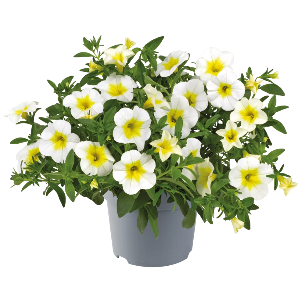 Calibrachoa centre jaune bord blanc