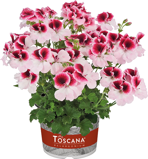 Géranium-Pelargonium grandes fl roses tendres avec motif rouge pourpre