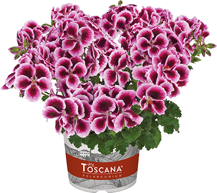 Géranium-Pelargonium gdes fleurs rouge pourpre avec collerette rose tendre
